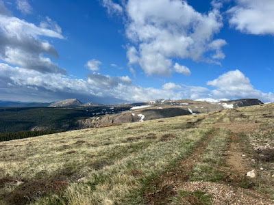 7 AM: 14.15 miles w/ 2700ft of vert averaging 10:40 pace. Up and back up the side of Loveland Mountain from Buckskin Joe trails off of Mosquito Pass road. Was racing weather coming in early today. Been doing this route quite a bit the past week or so and really love it. Got up to 12,700ft today and the summit is still another 1100ft above me. One of the few places without a lot of snow above tree line due to it being southeast facing. Most likely will do my long run up there tomorrow as well.